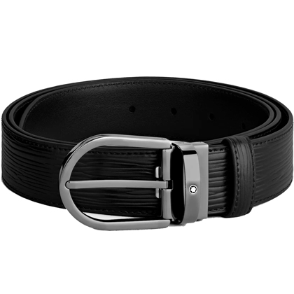 Черный кожаный ремень с подковообразной пряжкой 35мм от магазина премиальных ручек Premium Pens в Белгороде.